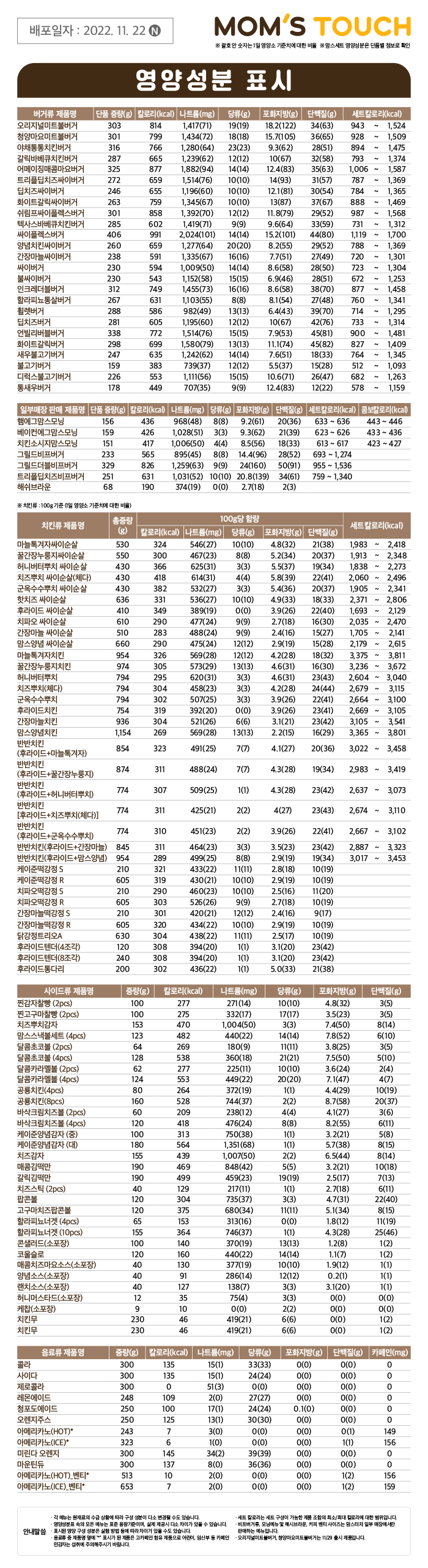 영양성분은 홈페이지에 나와있는데