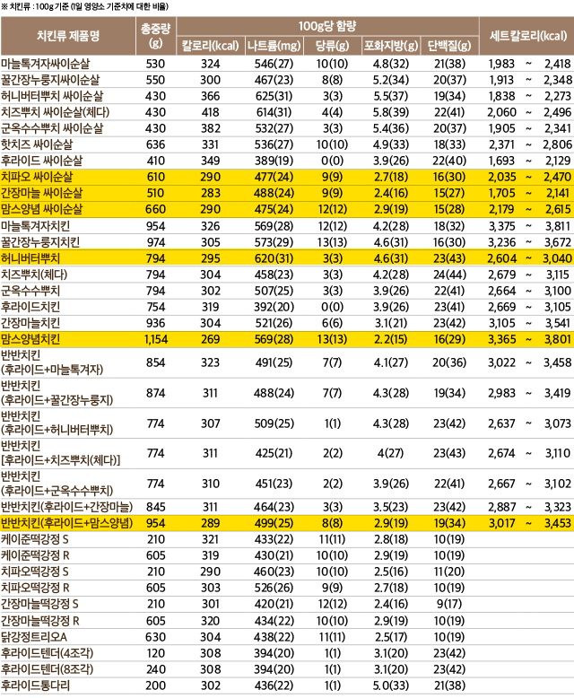 치킨류중에는 아래 제품들이 어떨까.