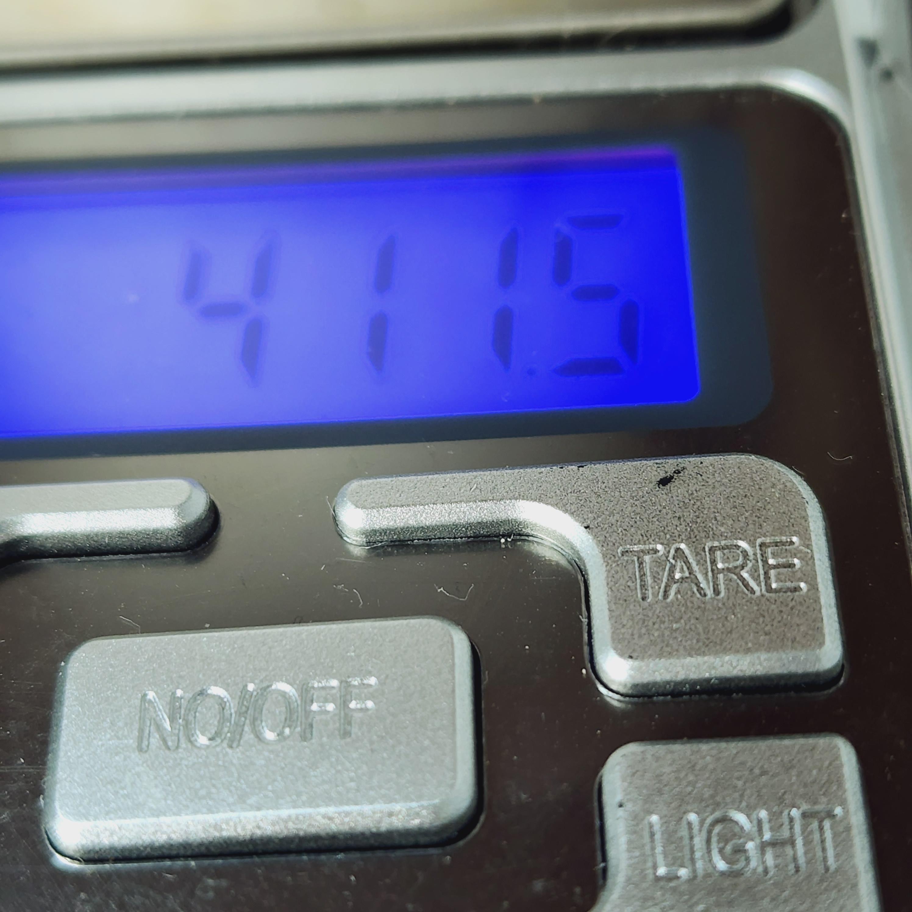 포장해온 그릇째로, 뚜껑은 제외한채로 무게를 재보니 411.5g이 나왔다.